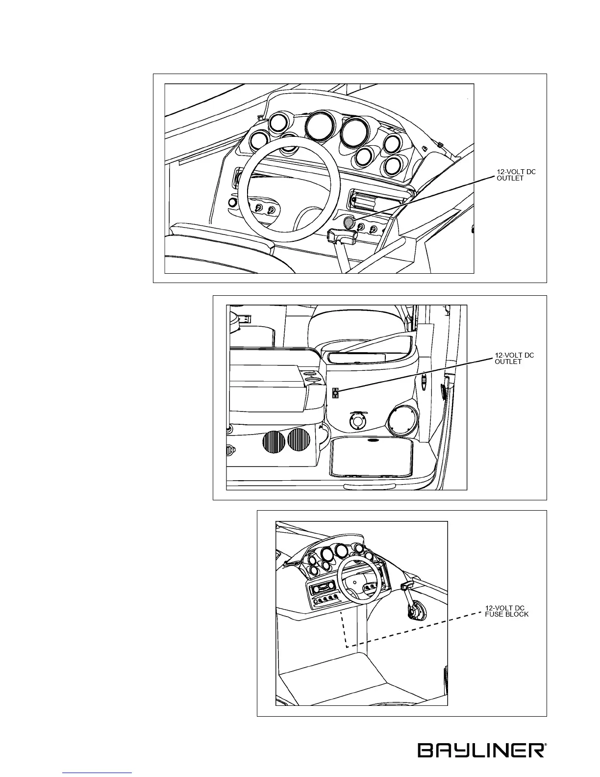 12-Volt DC Fuse Block: Located under the