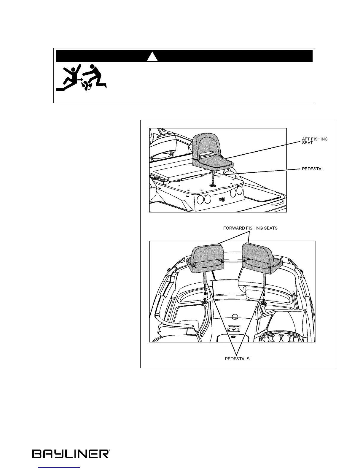 • Sitting on a fishing seat while underway is especially hazardous and