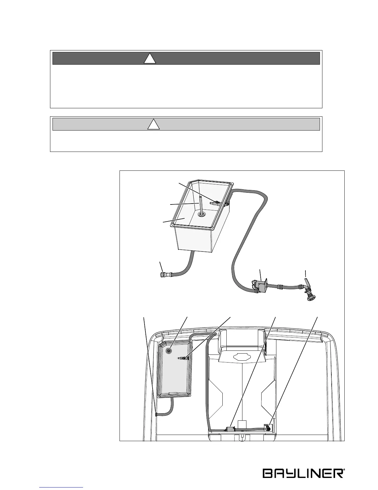 • Any leak or break in this system may allow large amounts of water to flood the bilge, which