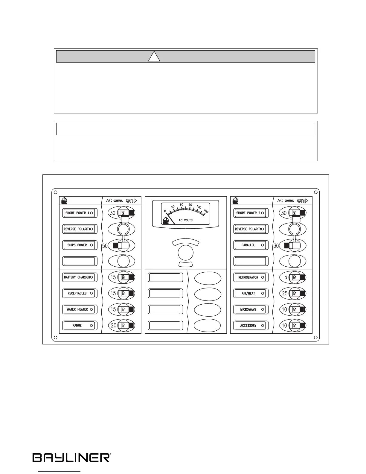 • The AC panel may contain inactive circuit breakers for accessories that are not available for this model boat.
