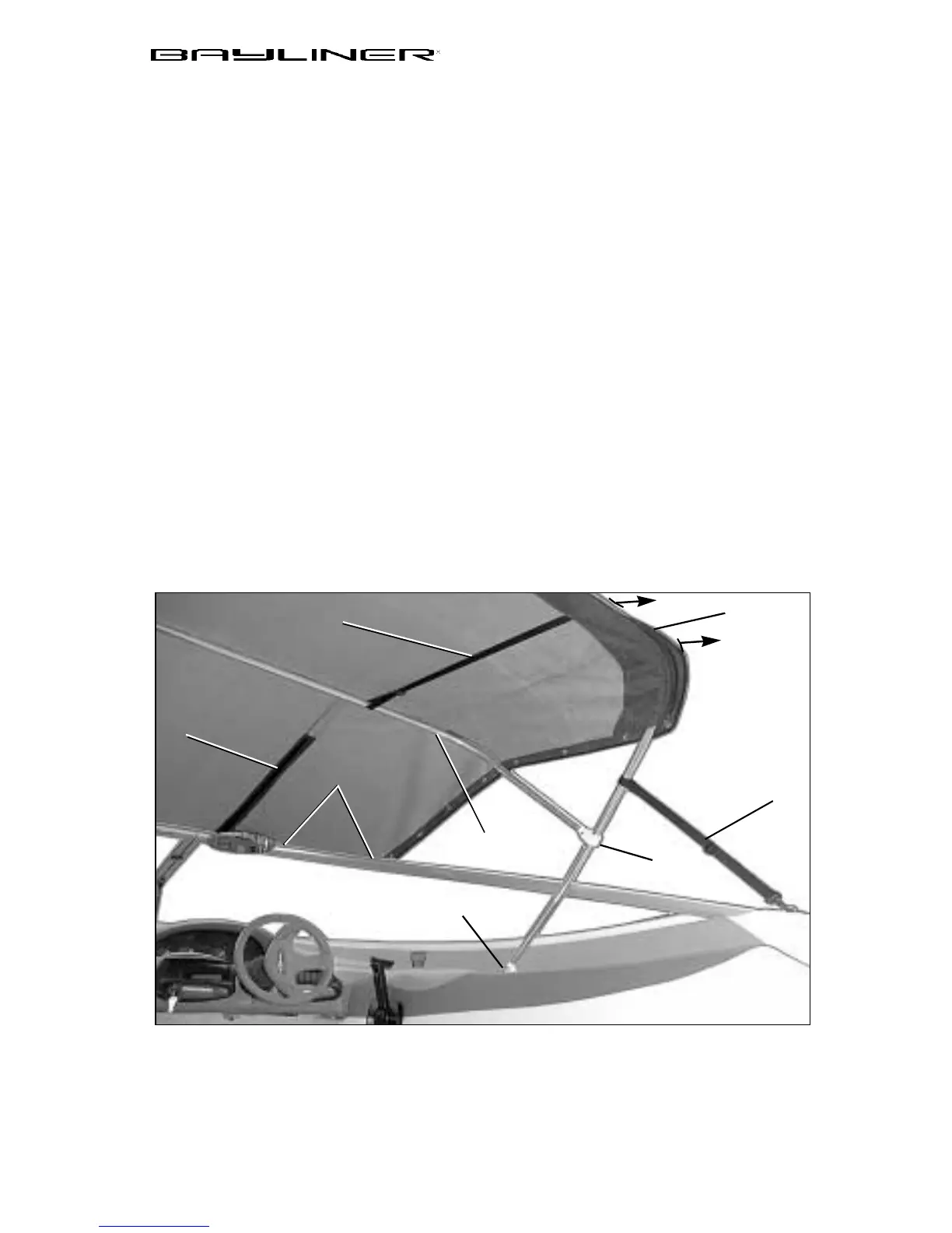 1. Attach eye ends of main bow (See point A below) to deck hinges on the boat