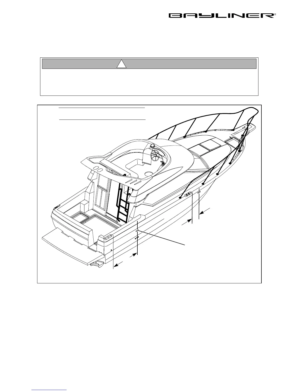 Use the following lifting sling locations when raising your boat in or out of the water.