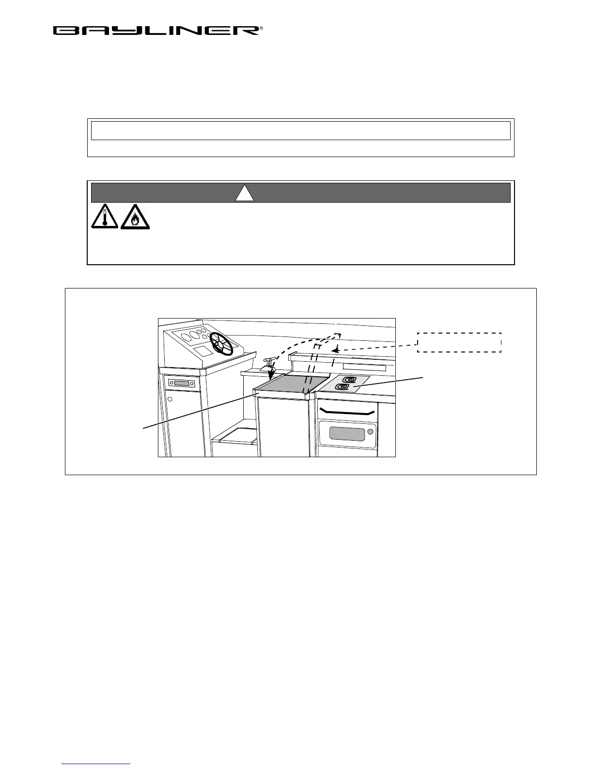 Before each use of the galley stove, the lower helm seat’s back rest MUST be lowered into the