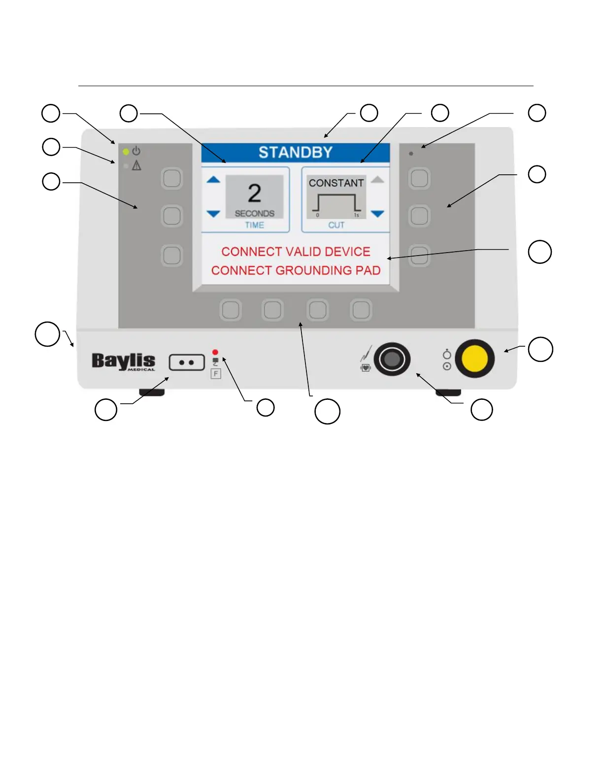 (4) Return Electrode Fault Indicator: The red LED illuminates when a return electrode is