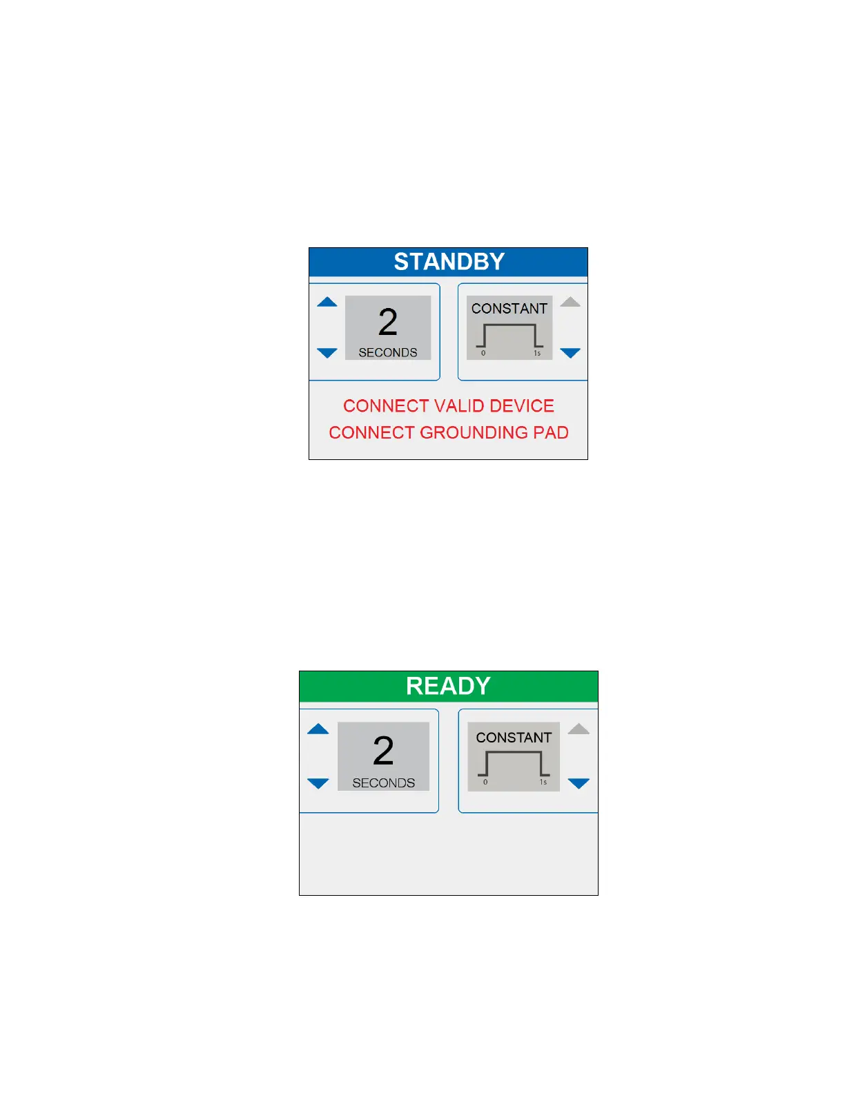 • The Ready State is initiated when a Return Electrode (Grounding Pad) is connected
