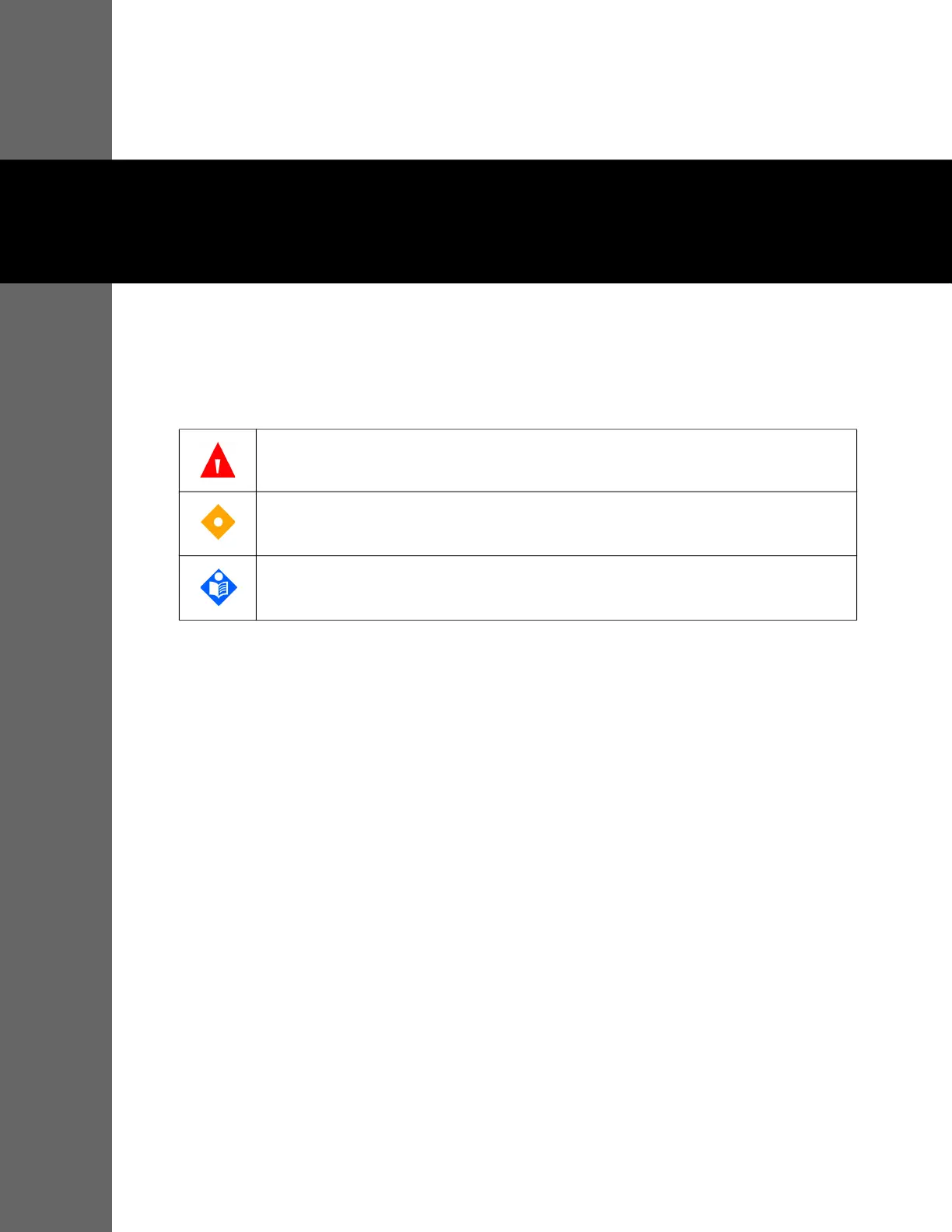 This manual uses three indicators to highlight critical information: warning, caution, and note.