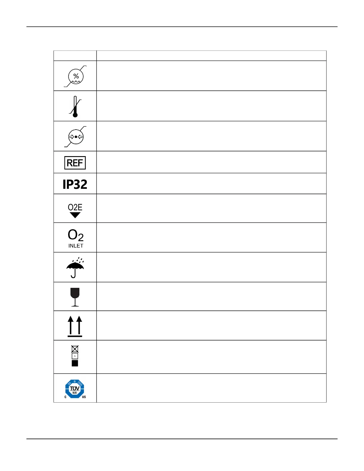 Table1-1.V4C-O2E Oxygen Mixer symbols (Continued)