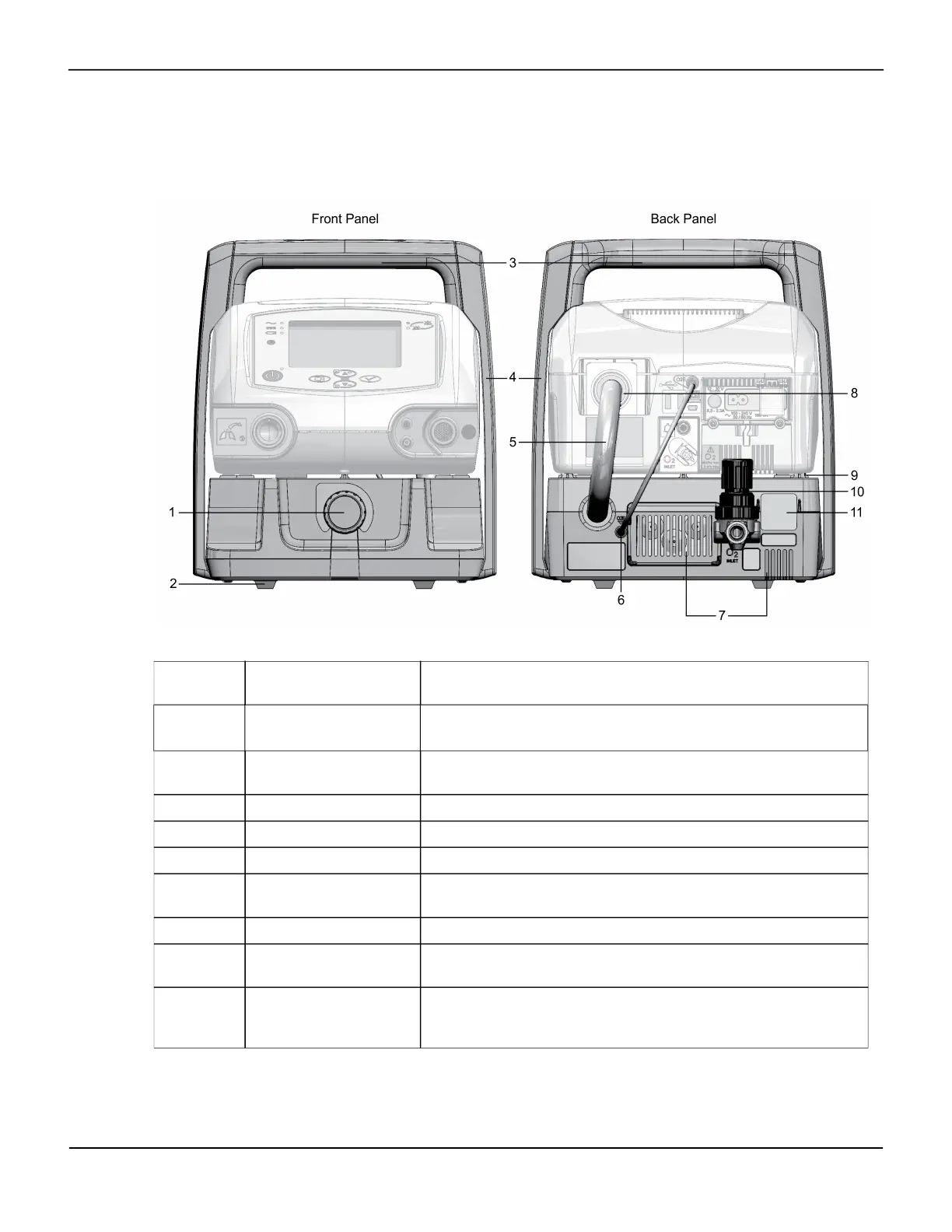 Figure2-2.V4C-O2E Oxygen Mixer features on the front and back panels