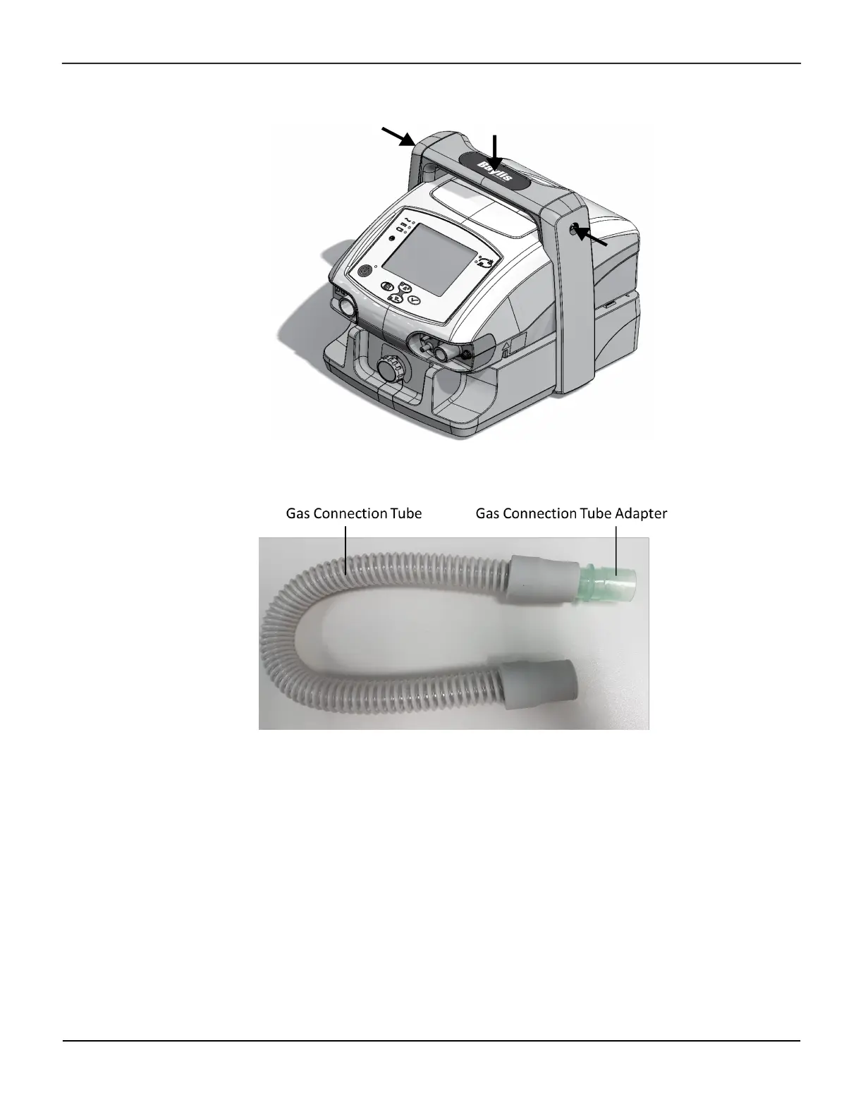 outlet and the gas connection tube adapter to the compatible ventilator's air inlet. Ensure it is not