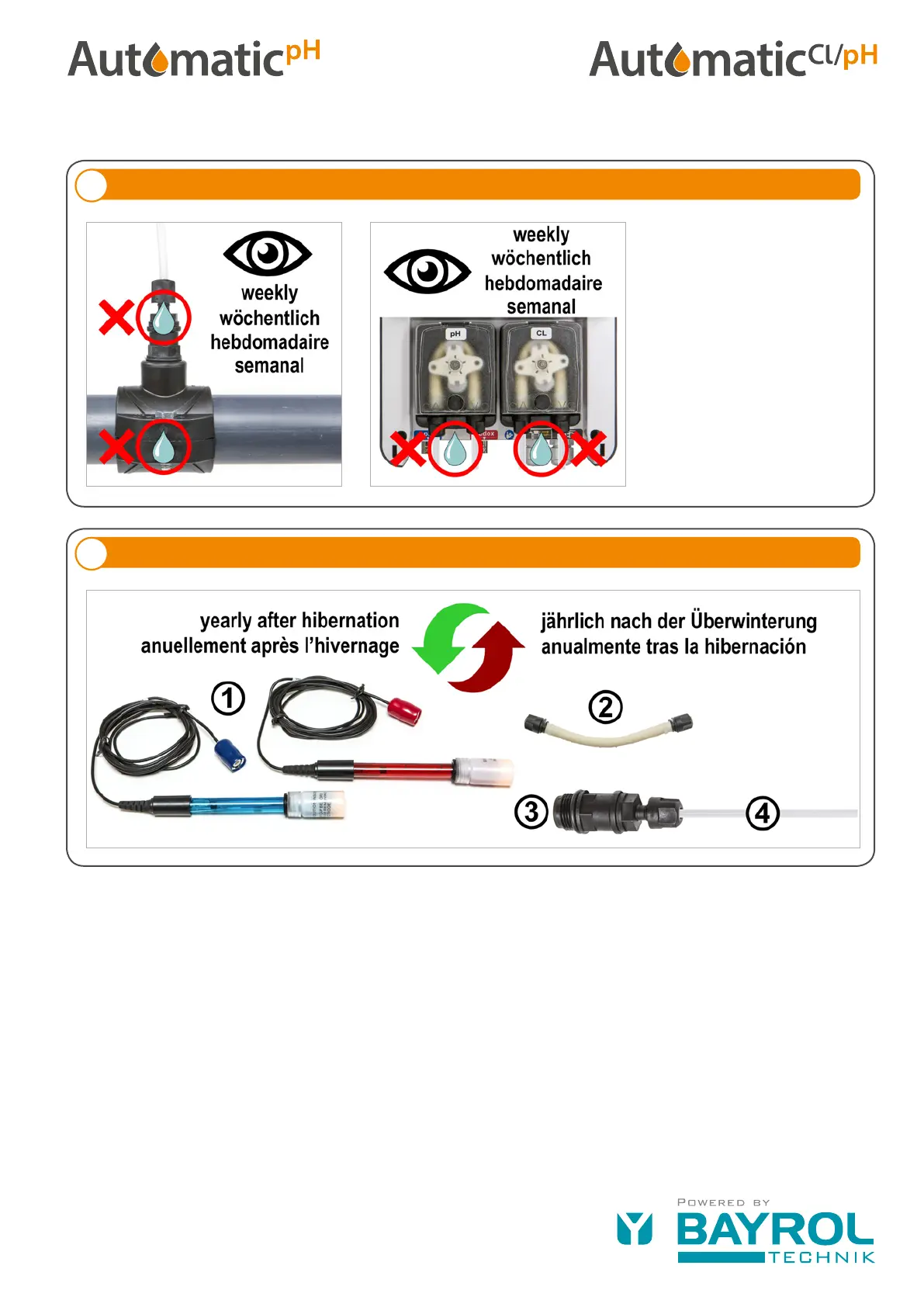 Weekly inspection • Wöchentliche Sichtkontrolle • Contrôle hebdomadaire • Inspección semanal