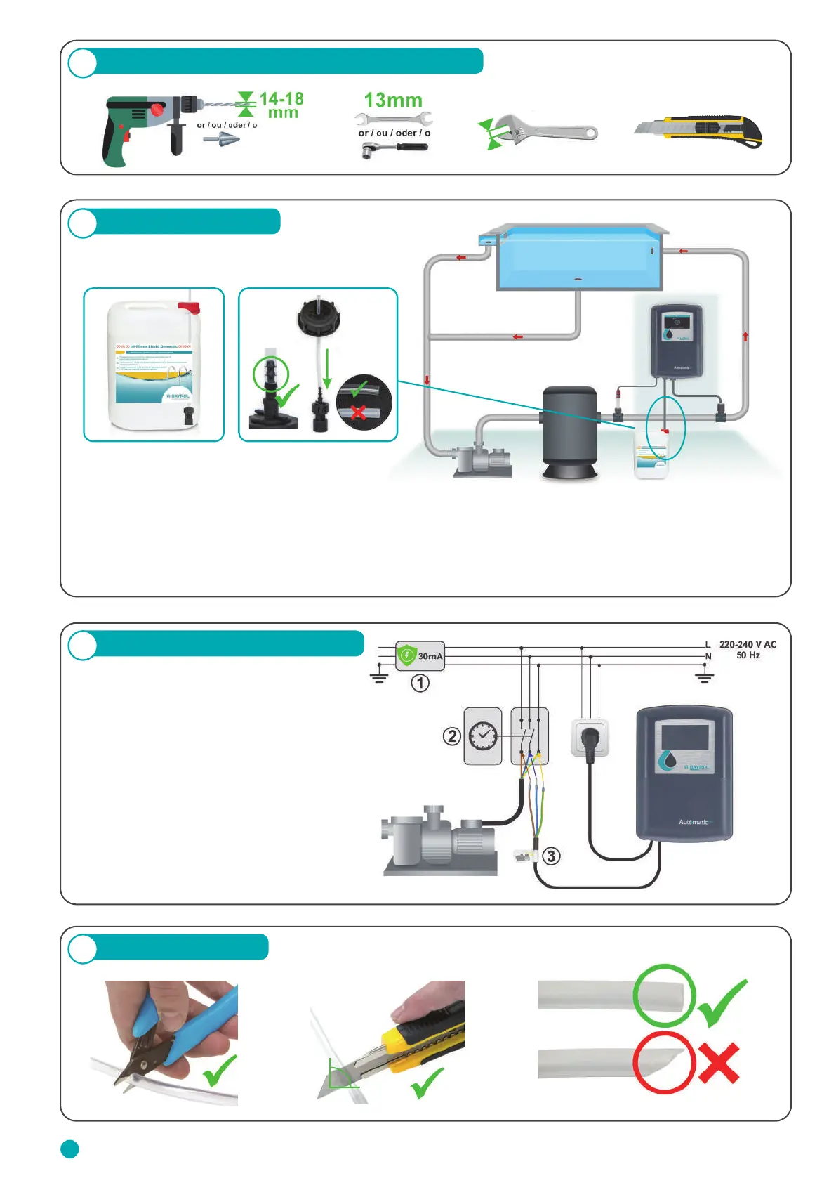 The injection of pH-Minus Liquid Domestic or pH-Plus Liquid must be the last component of the installation before