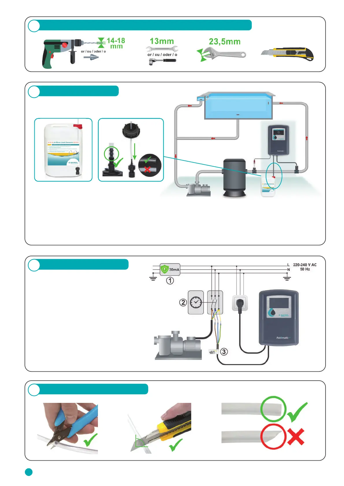 Die Einimpfung von pH-Minus Liquid Domestic bzw. pH-Plus üssig muss die letzte Komponente der Installation vor der