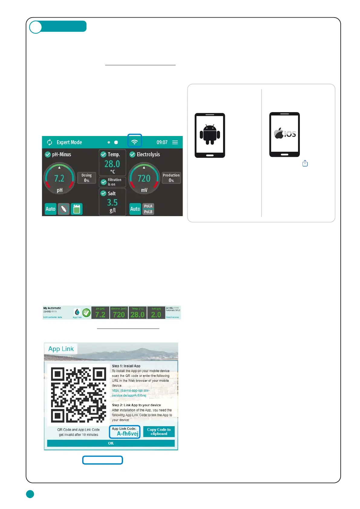 – A QR code with URL (https://bayrol-poolaccess ...) will