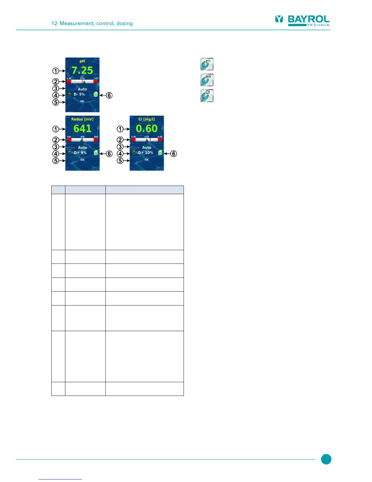deviation between 0 % (dosing pump off) and 100 % (dosing pump