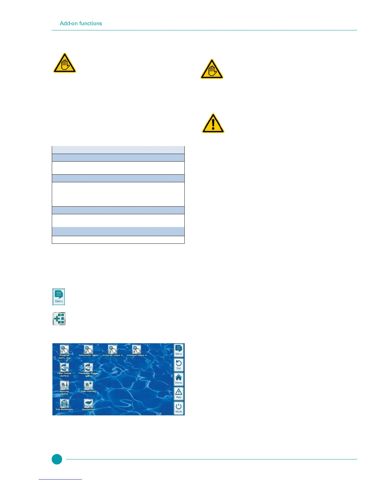 The menu Add-on functions is realised as an icon menu. Every