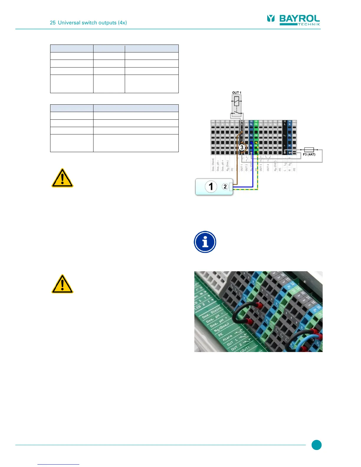 For all 230 V~ switch outputs using PoolManager’s