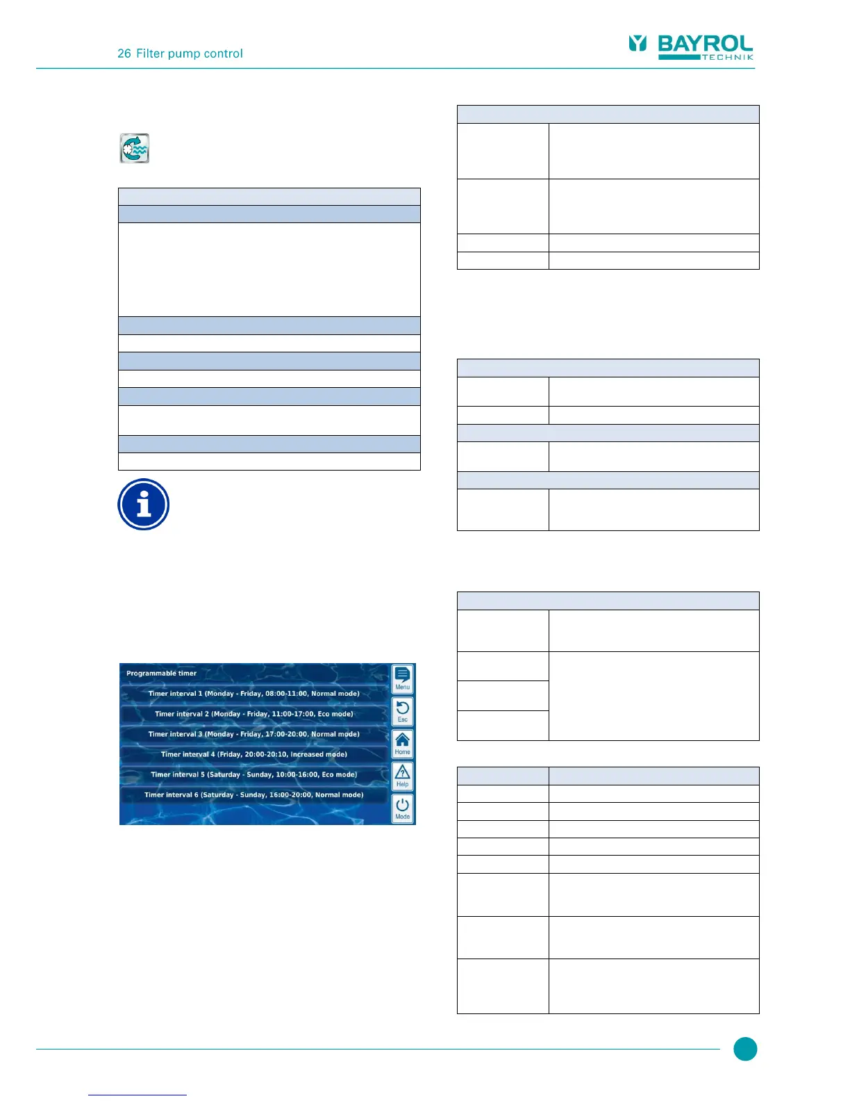 26.3 Menu Filter pump