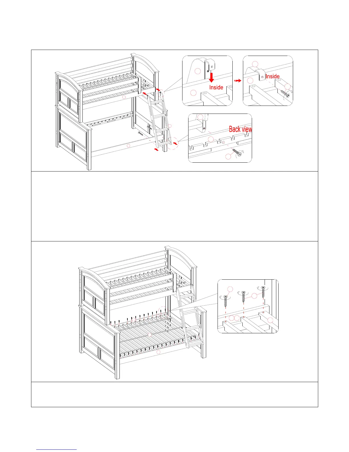 (K) and the upper footboard (D) in the opening provided. Make sure that the bottom threaded inserts align