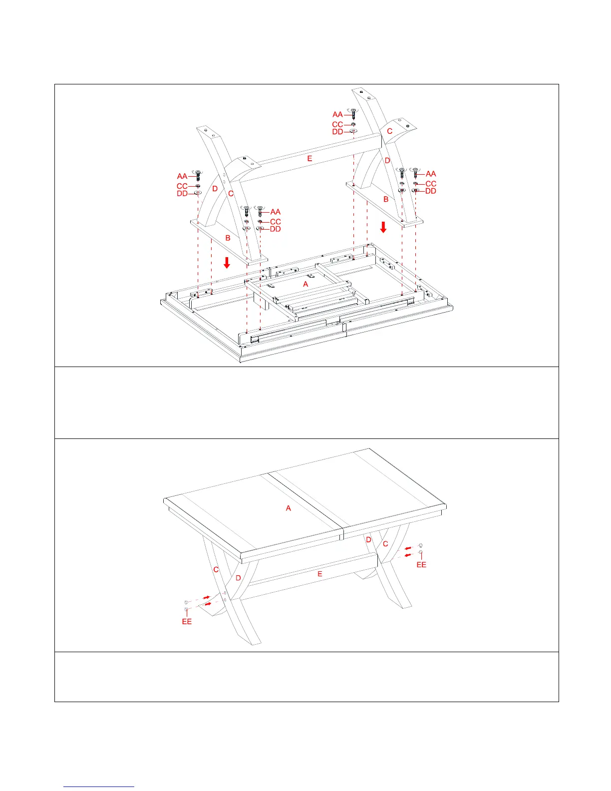inserts on the slide supports on the table top (A). Insert eight bolts (AA) with lock washers (CC) and flat