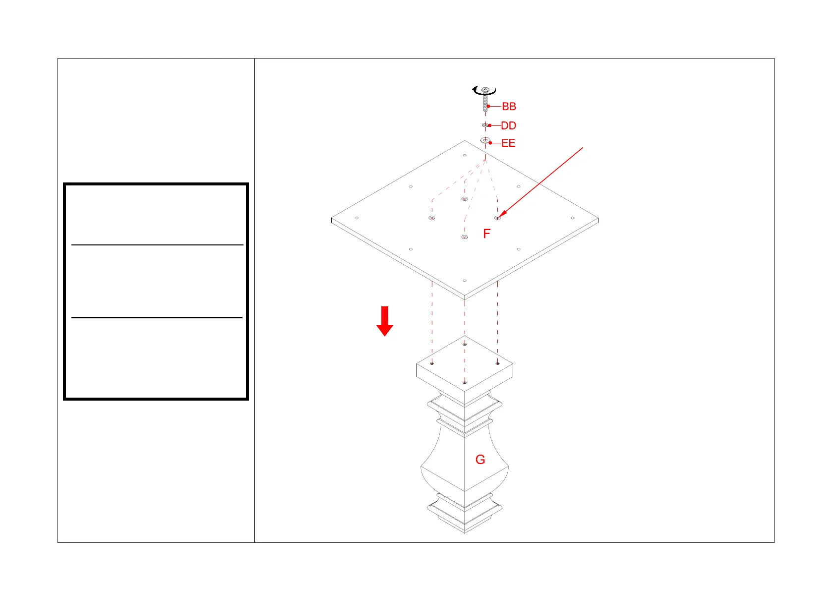 ¡ - No apriete todos los tornillos hasta