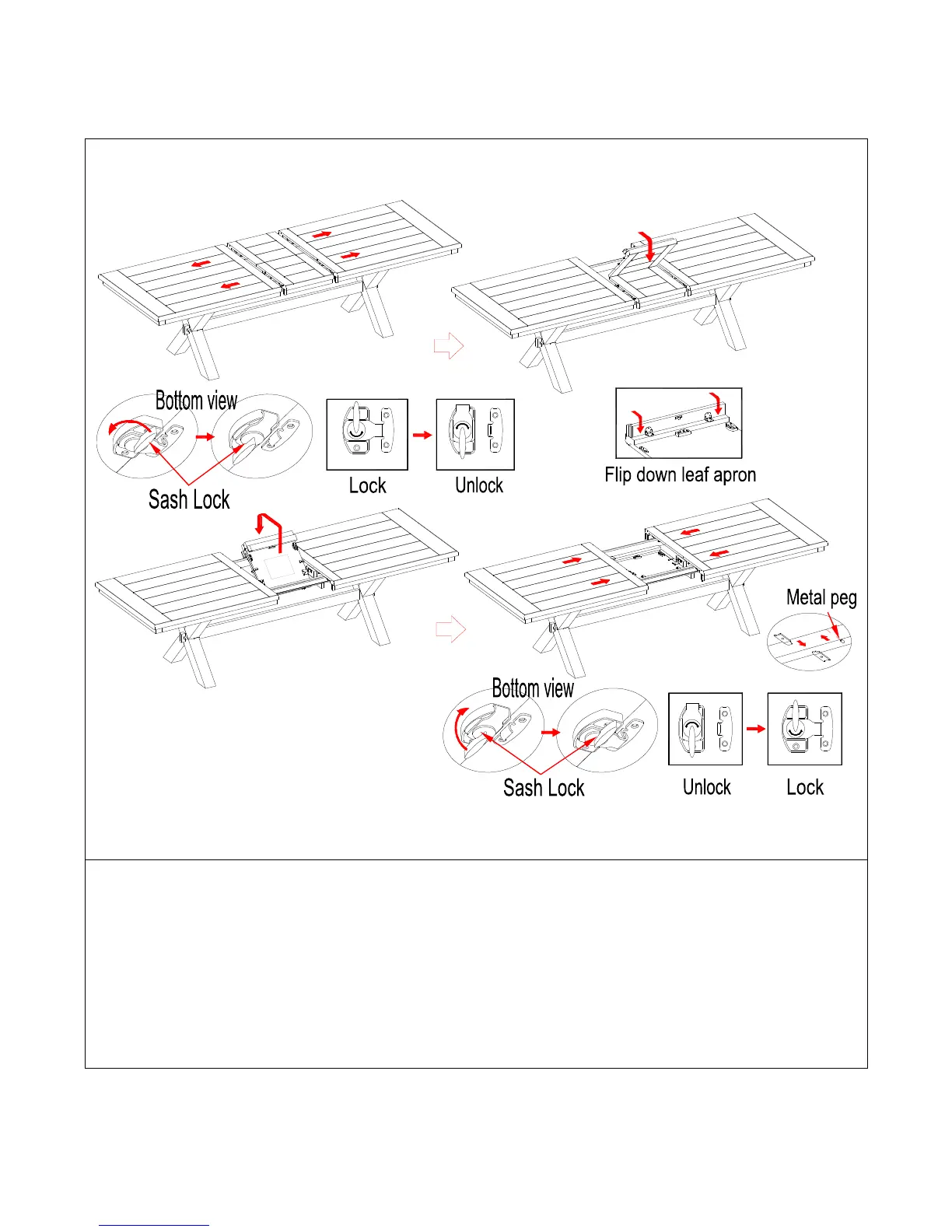 lock handle all the way to the “OFF” marking on the sash locks, then pull the table top wide open equally