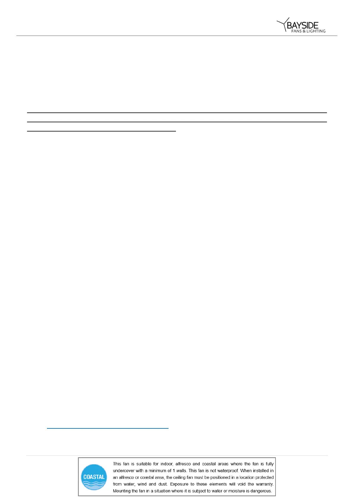 In the event of service being required, please call the Bayside Fan Warranty Hotline on 1300 289 808