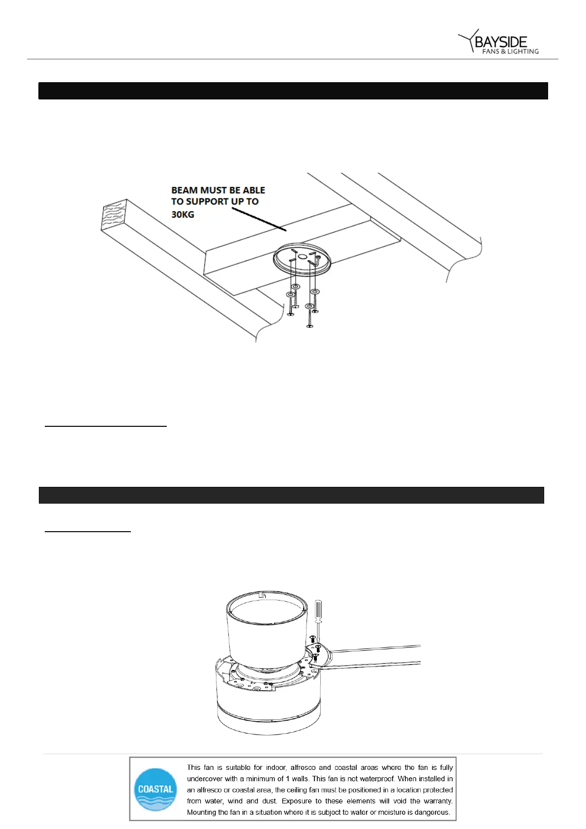 with two long screws provided. Ensure at least 30mm of the screw is threaded into the support.