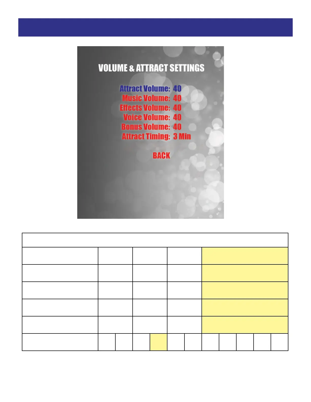 VOLUME & ATTRACT SETTINGS