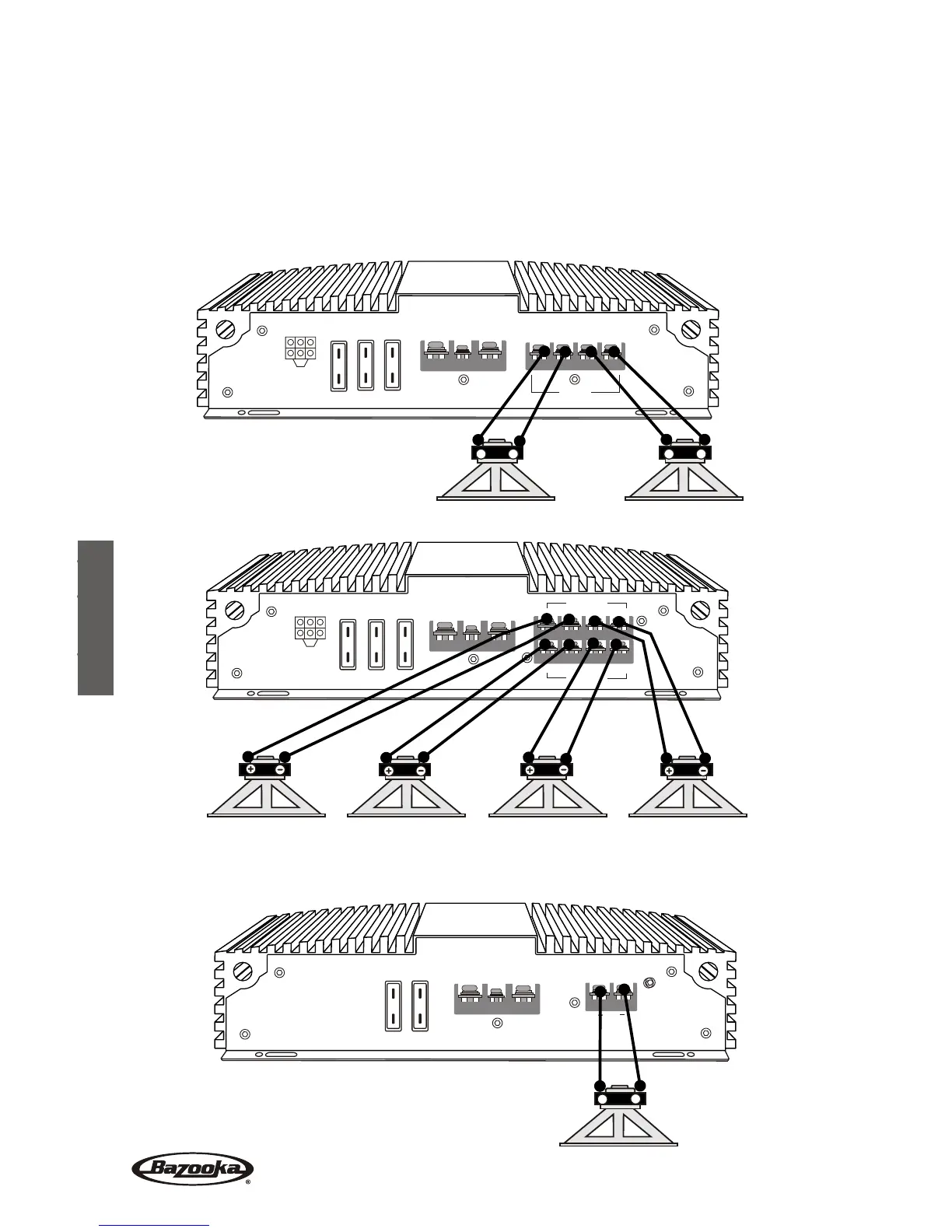 positive (+) du haut-parleur et réciproquement pour les bornes négatives (-).