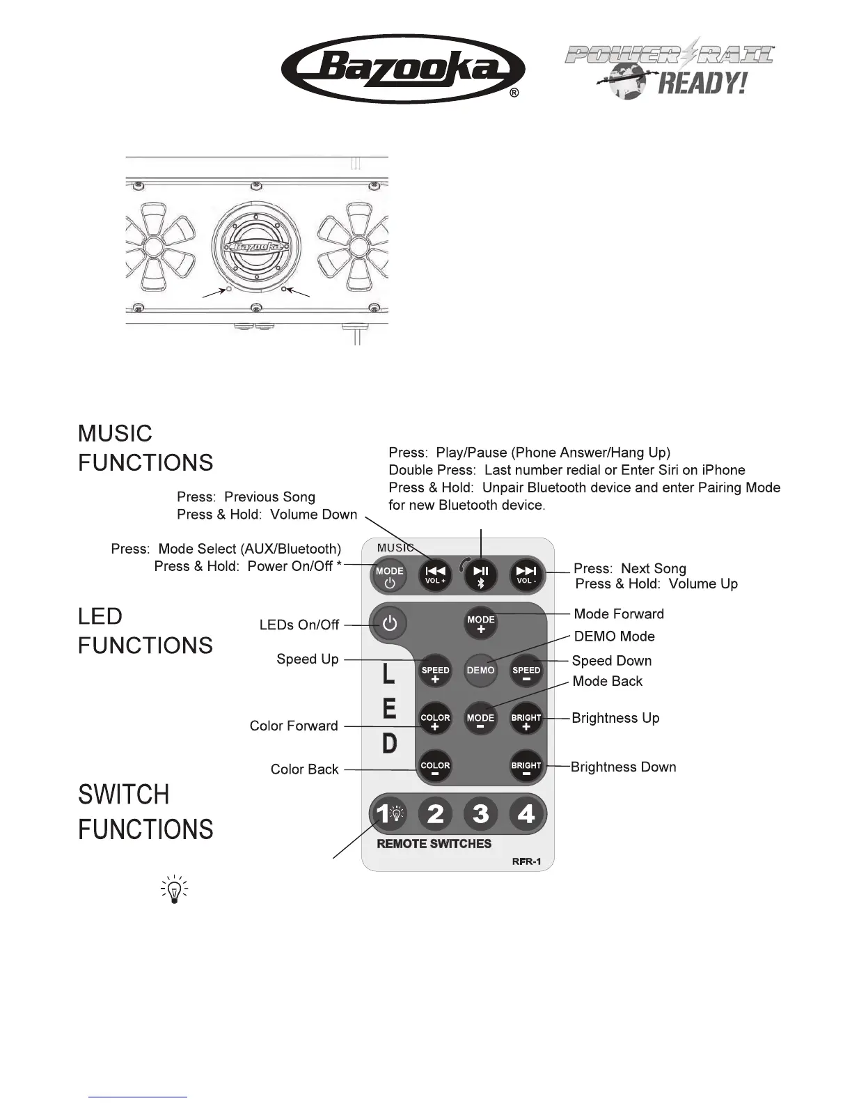 may toggle the Bluetooth Receiver into AUX/BT Mode and it will remain in the last selected mode on subsequent Power On.
