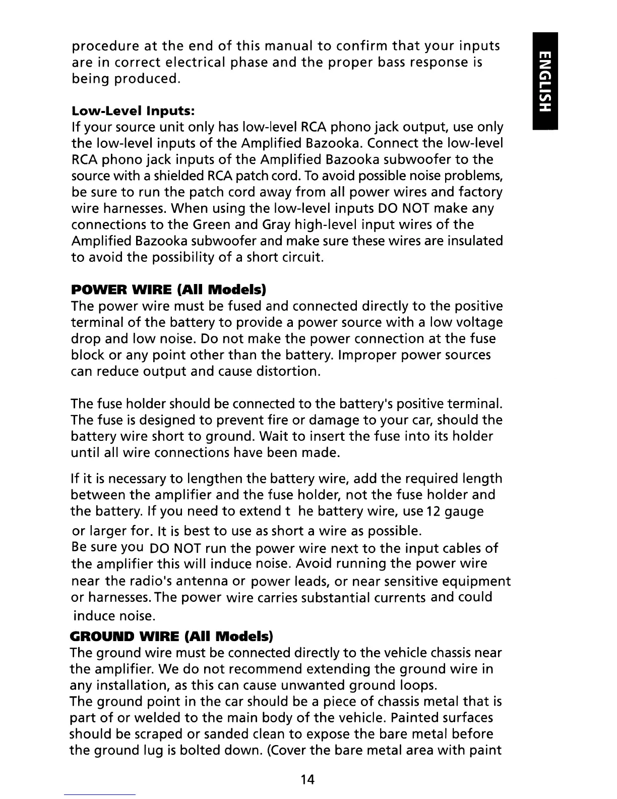 Bazooka BTA6250D - Low-Level Inputs; Power and Ground Wire Installation; Power Wire Connection; Ground Wire Connection