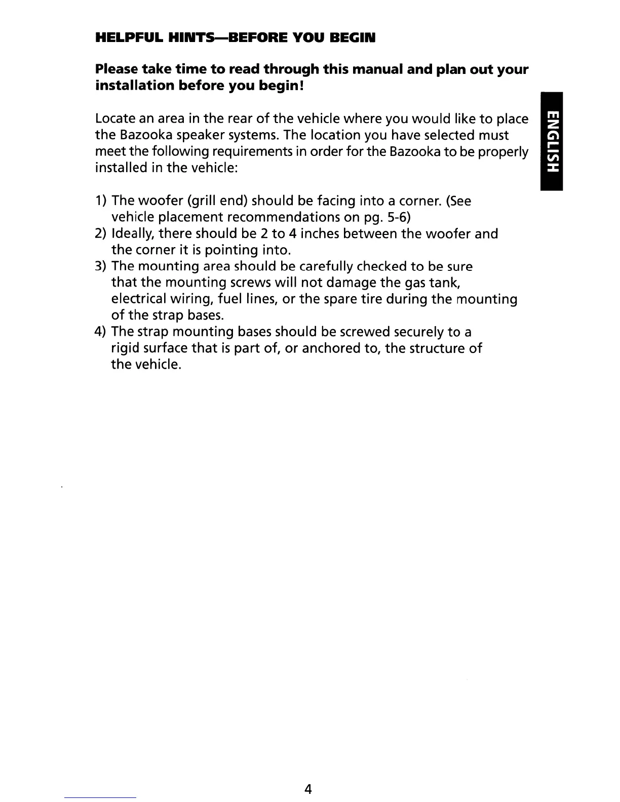 vehicle placement recommendations on pg.