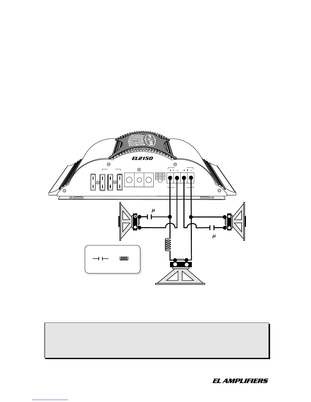 CAUTION! In Tri- mode operation, the amplifier must see a 2 Ohm load or higher for