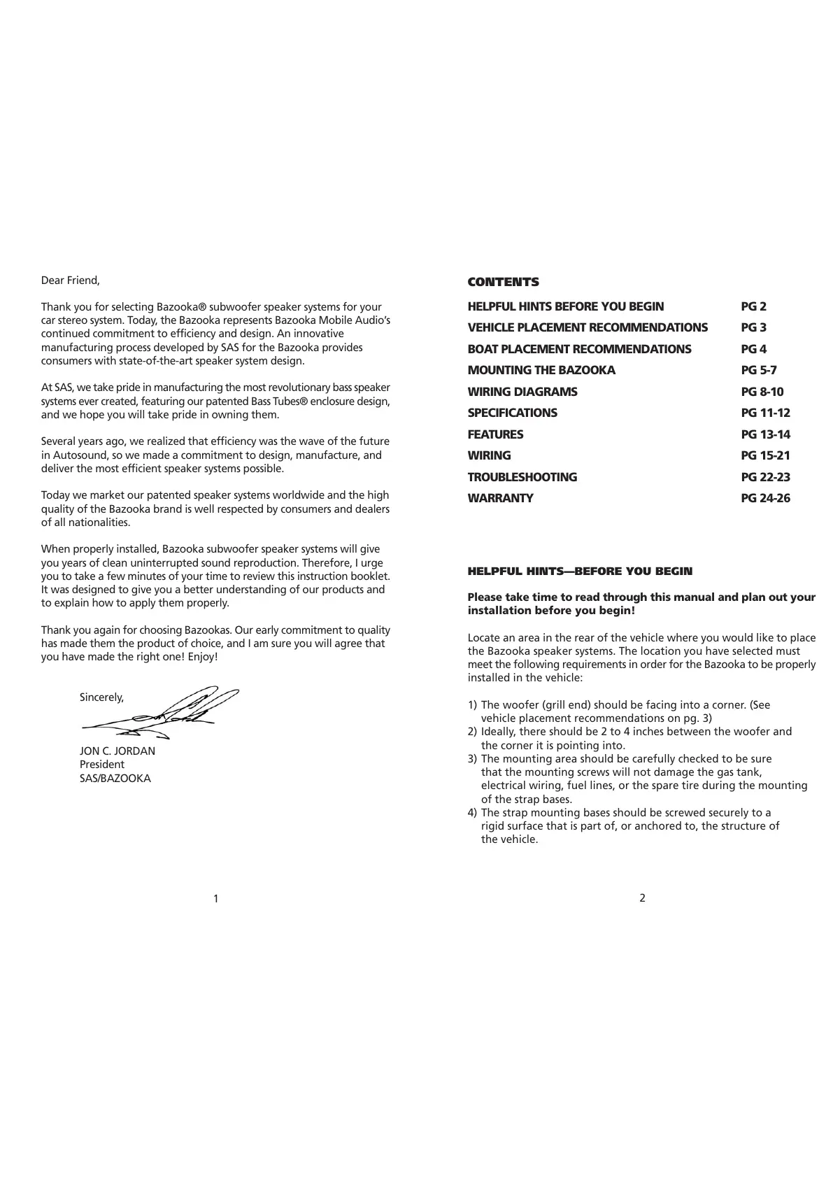 Thank you for selecting Bazooka® subwoofer speaker systems for your
