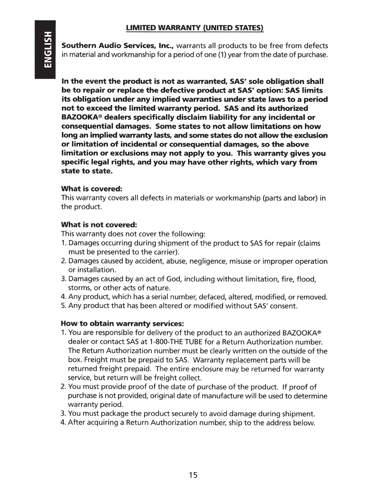LIMITED WARRANTY (UNITED