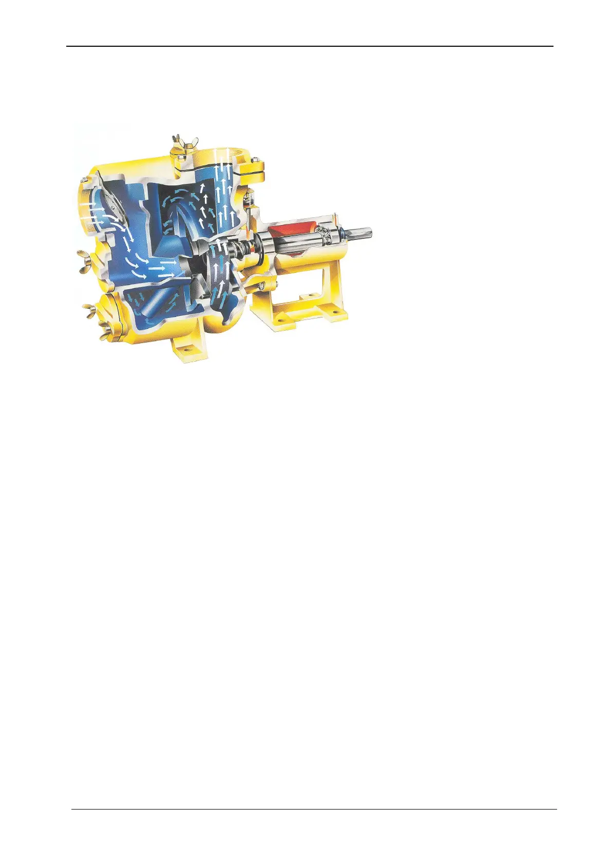 The drawing below is a cross-section of a self-priming centrifugal pump. The arrows show the course of