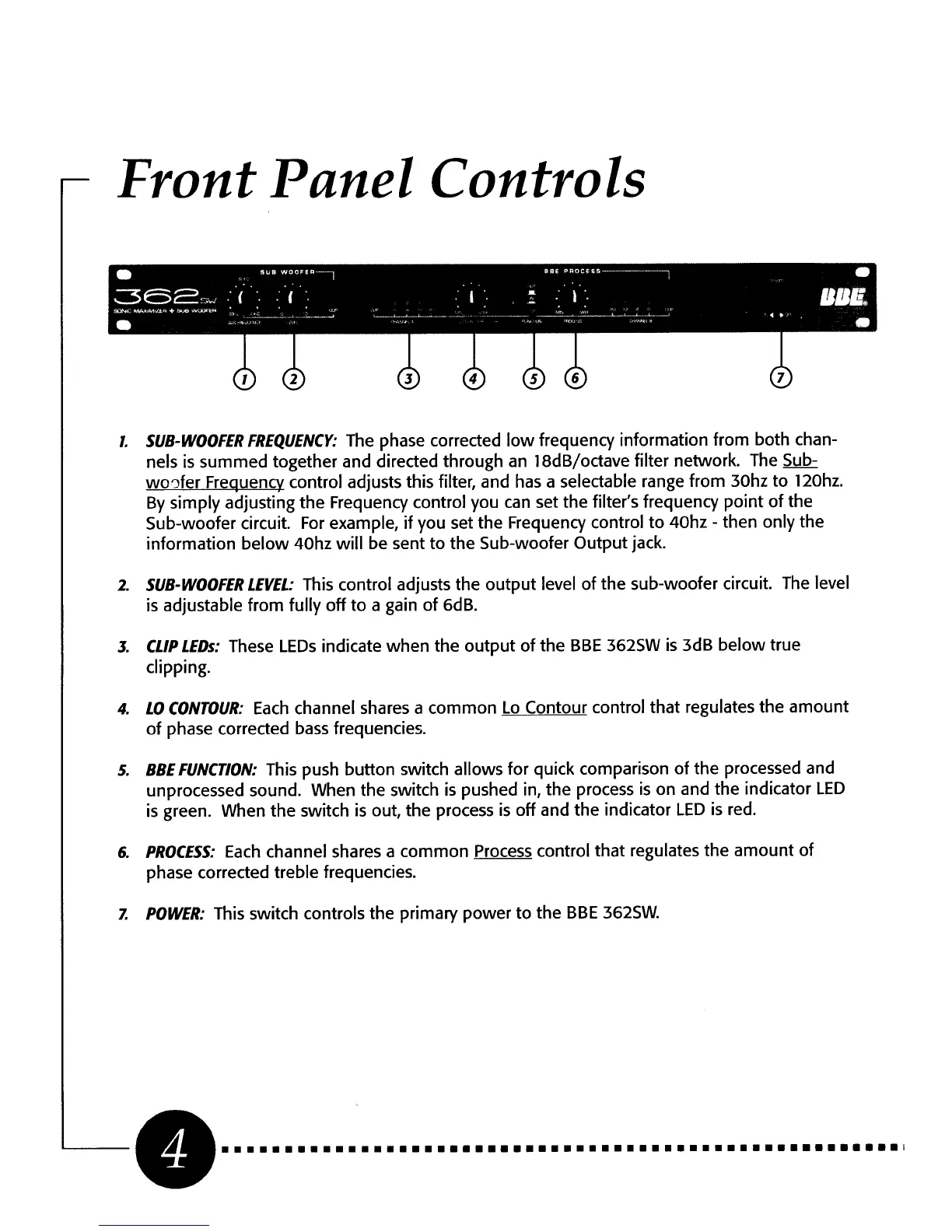 BBE 362SW - Front Panel Controls