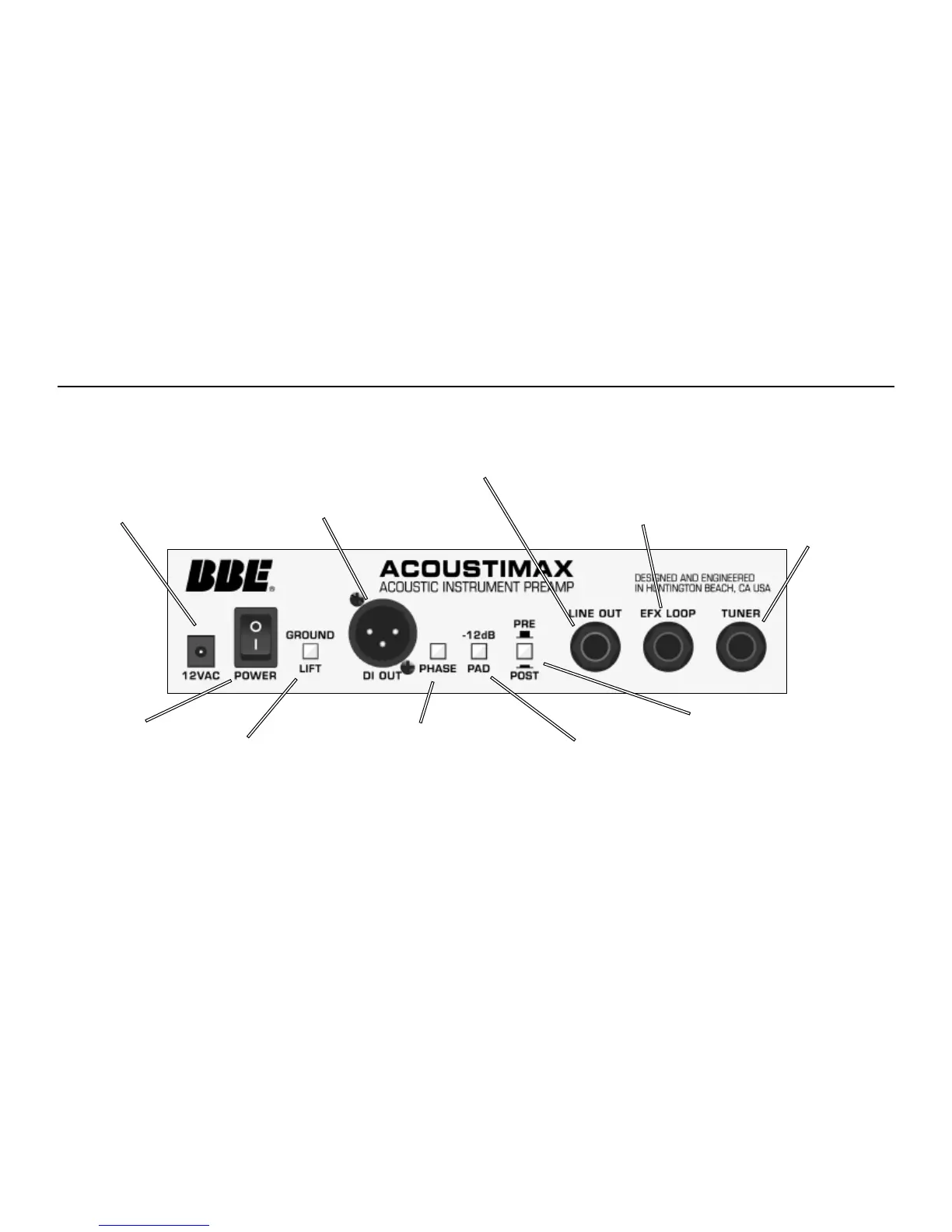 BBE ACOUSTIMAX - Rear Panel Connectors and Switches