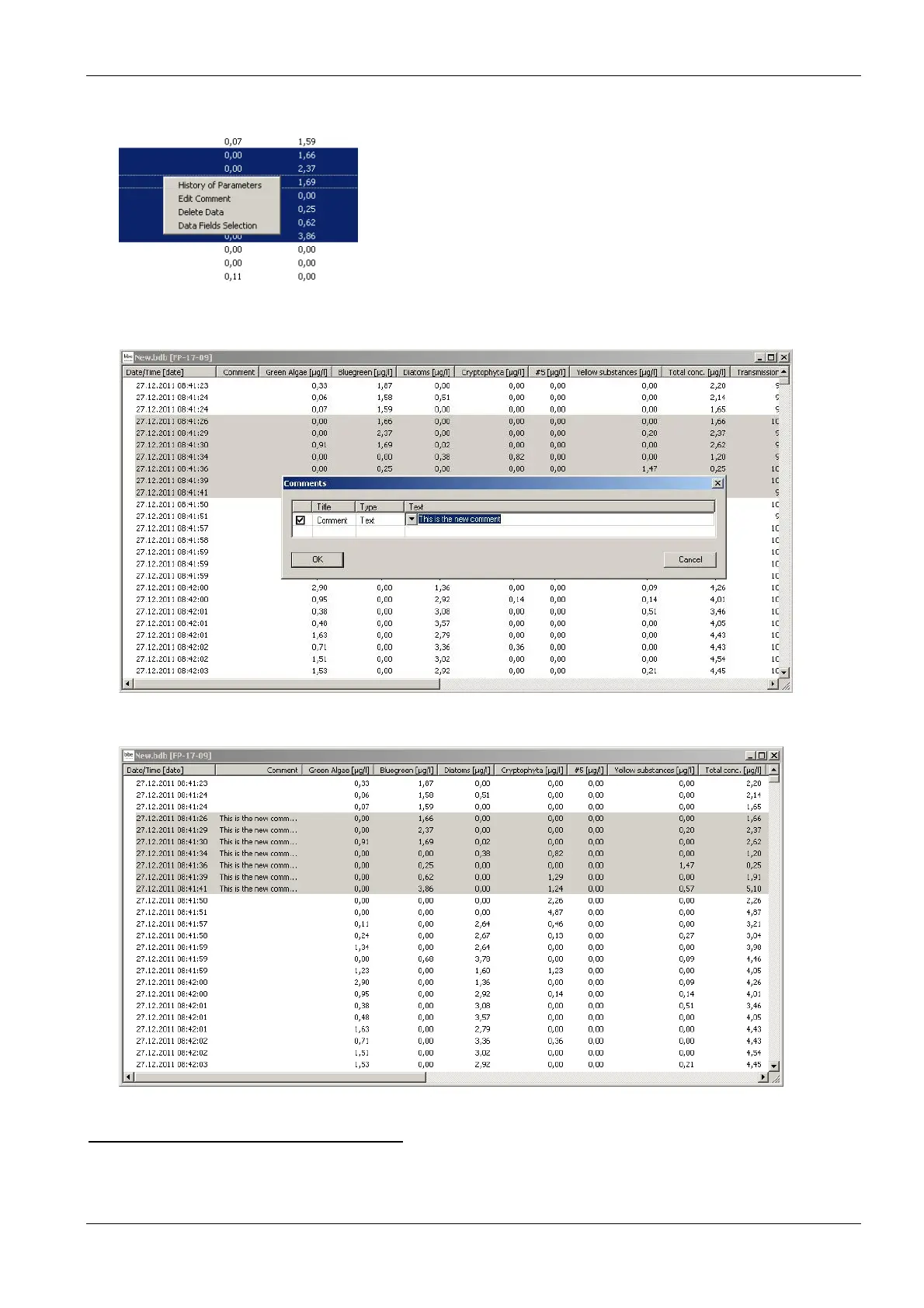 Enter the new comment for the selected data: