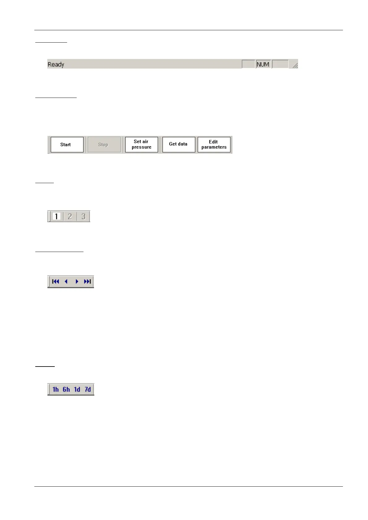 The toolbar “Data navigation” contains buttons to navigate within the data. “One page” corresponds to the time