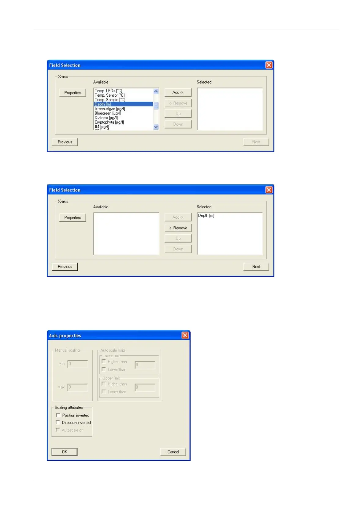 Some properties can be set for each axis. For the first axis, this is the position and the direction.