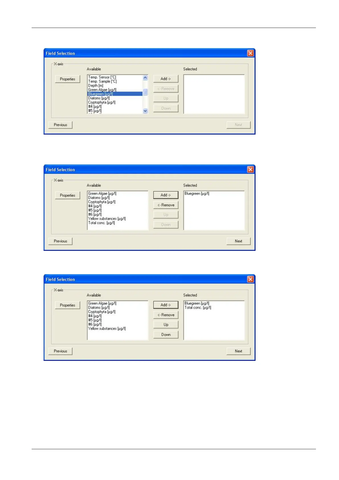 14. For example, “Total chlorophyll concentration” and “Bluegreen” have to be selected here.
