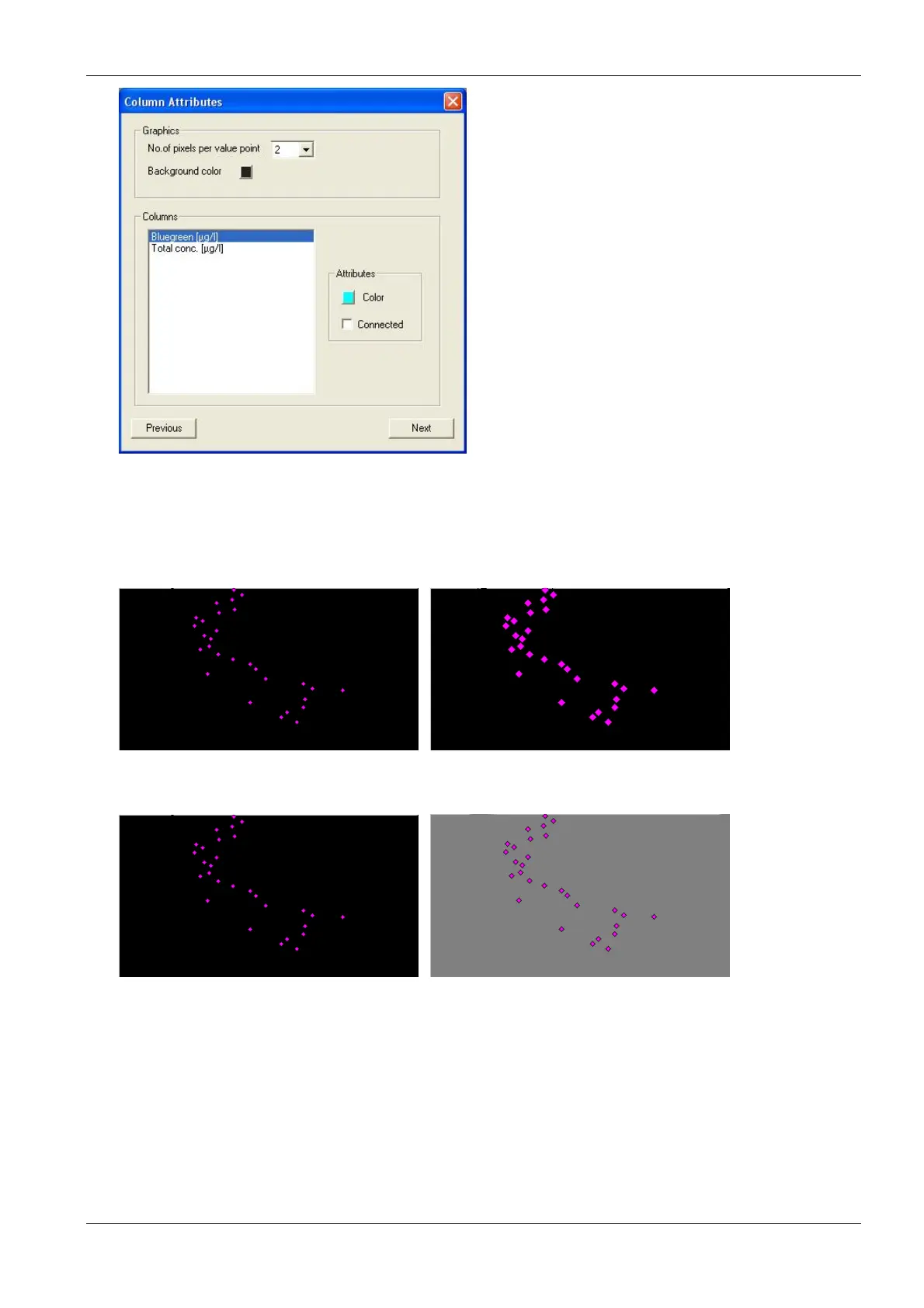For illustration, please see the examples with connected and unconnected dots, different sizes and background
