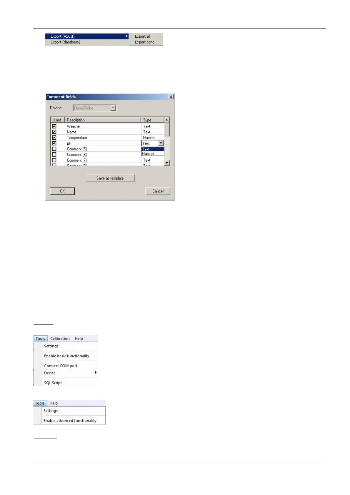 beginning of the measurement. The comments names and types can be defined within this dialog.