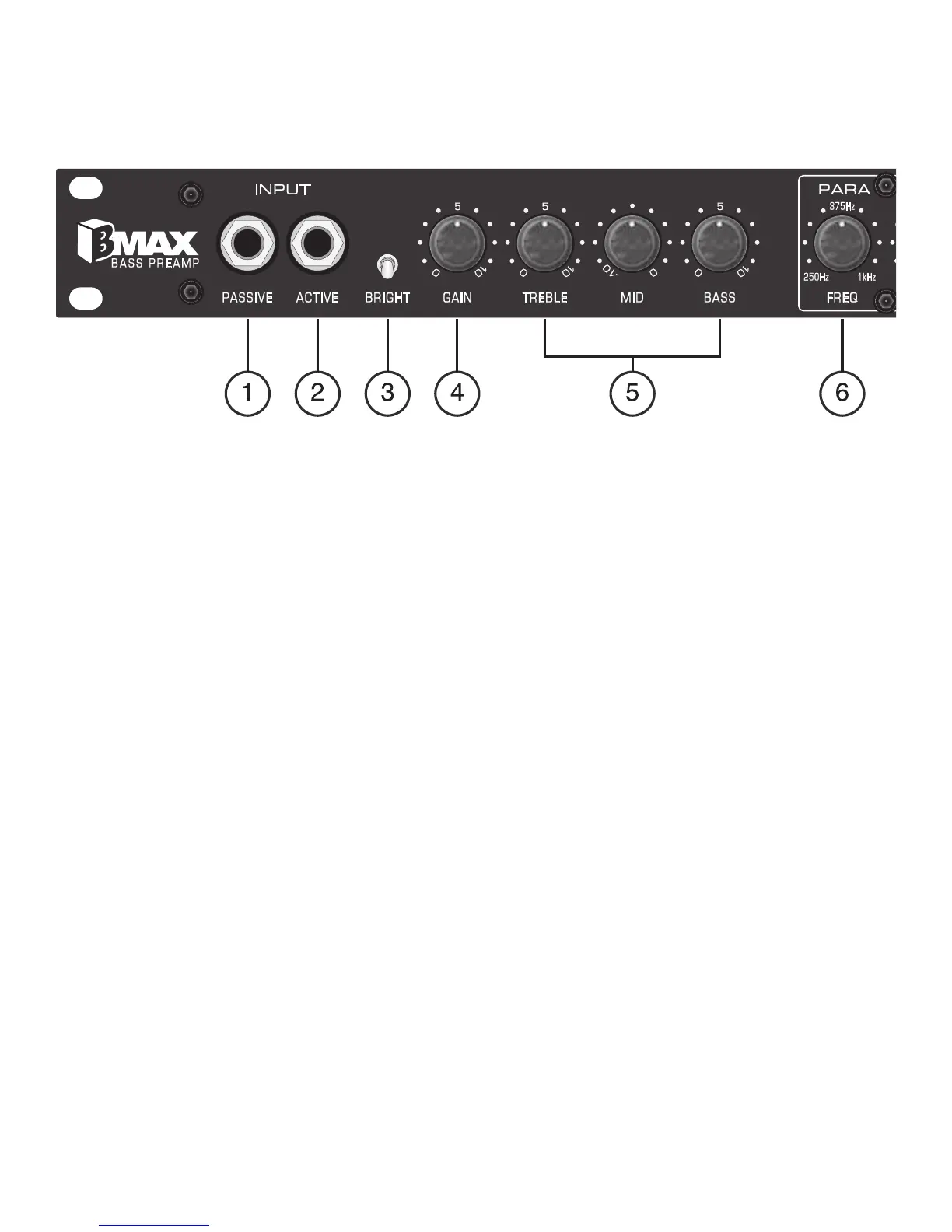 1. PASSIVE: This jack allows for the connection of a bass guitar with passive-pickups to the BMAX.