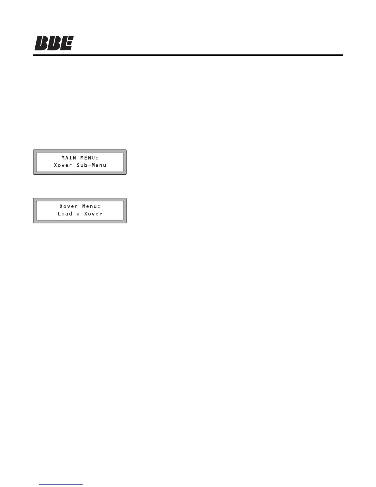 ENTER buttons to adjust the Xover Submenu. Included submenus follow: