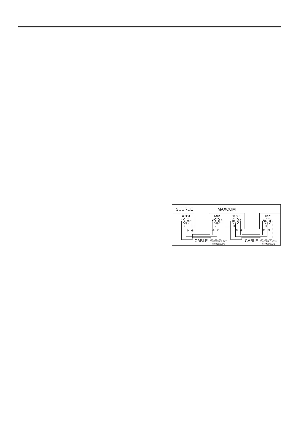 If the Unit preceding the MAXCOM uses output balancing we recommend that you use balanced audio con-