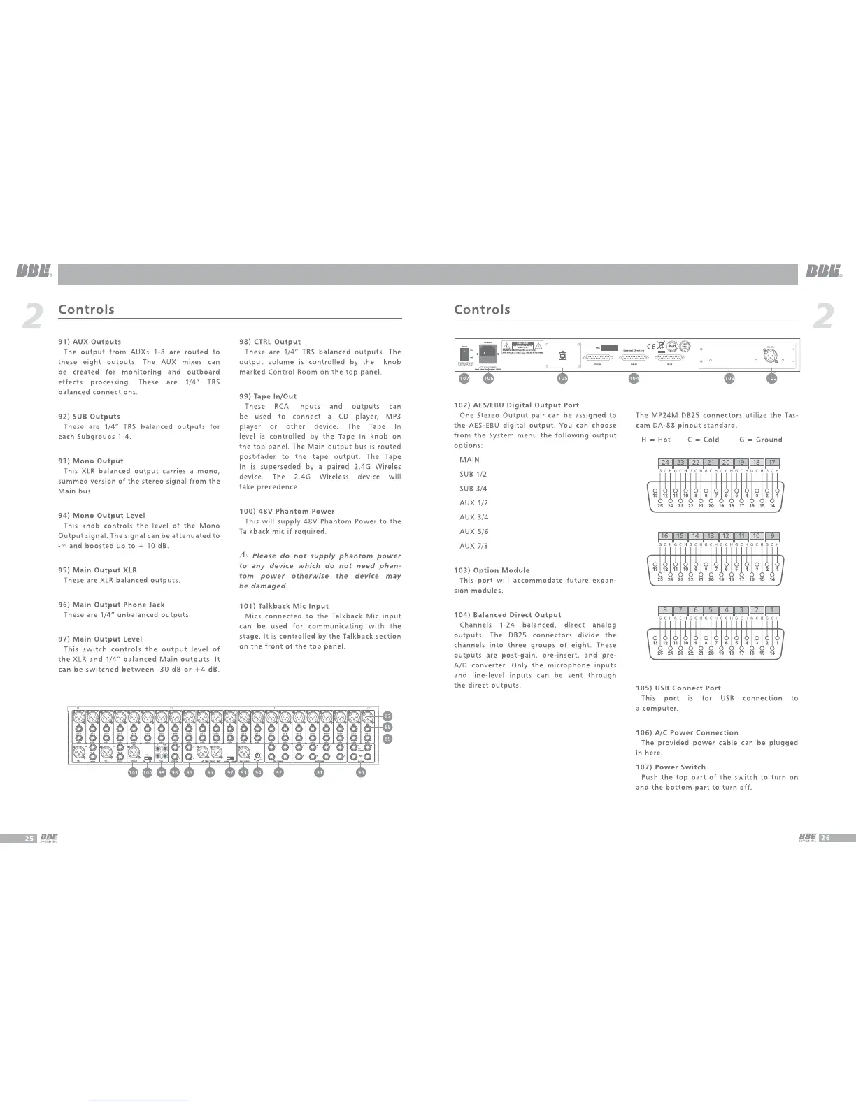 BBE MP24M - Rear Panel Connectivity Details; Output and Input Ports; Phantom Power and Talkback