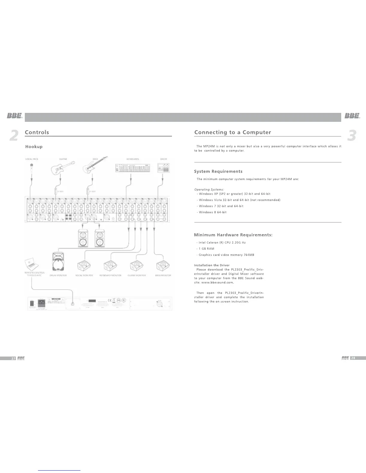 BBE MP24M - Connecting to a Computer; System Requirements; Driver Installation
