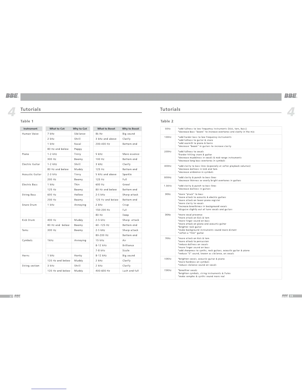 BBE MP24M - Tutorials: EQ Charts; Instrument EQ Suggestions; Frequency Range Effects